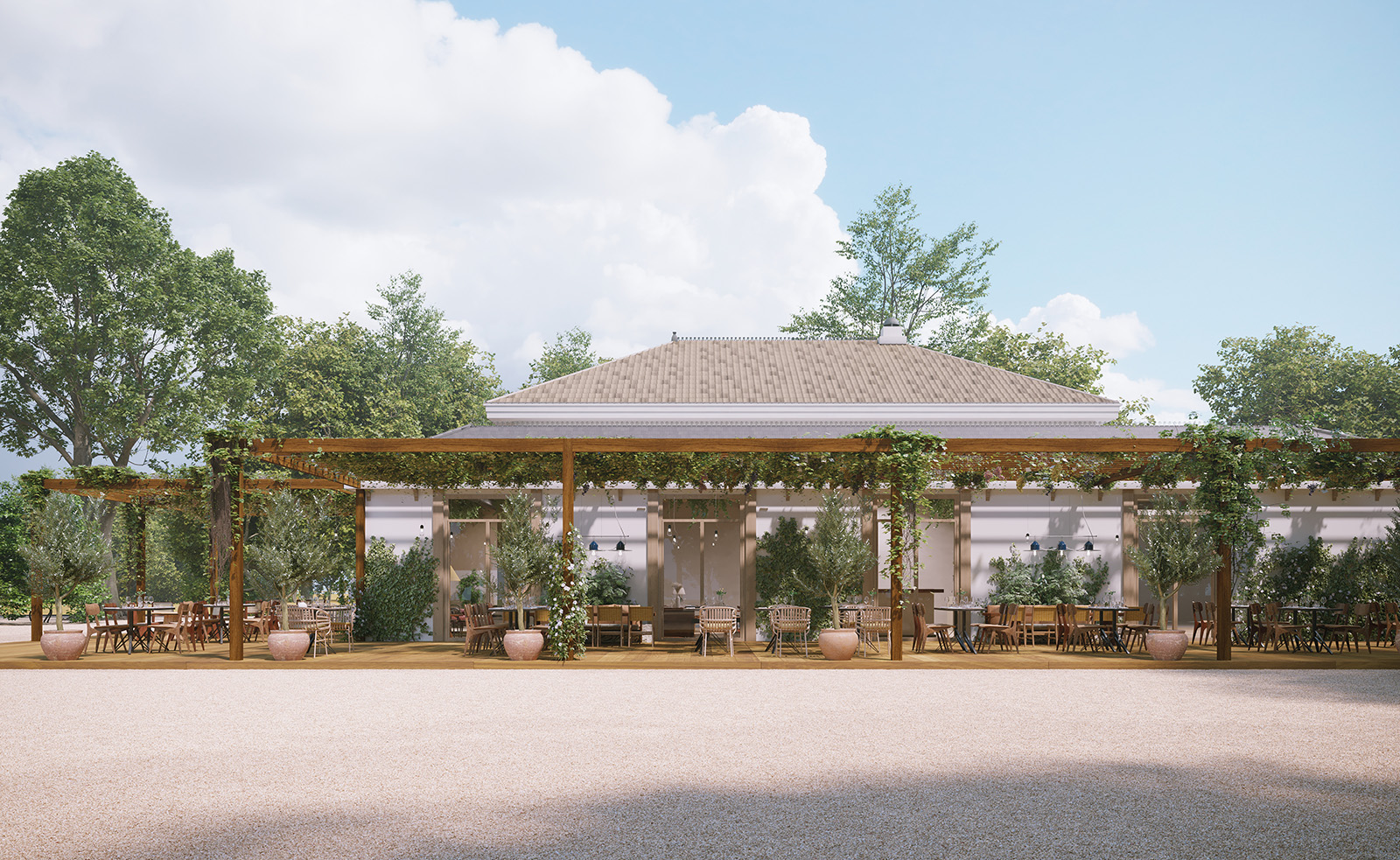 For the restaurant Le Perchoir in Paris, we translated architectural concepts into refined 3D models and premium visualizations, highlighting the calm, understated character of Le Perchoir’s wood-finished pavilion and its natural continuity with the landscape.